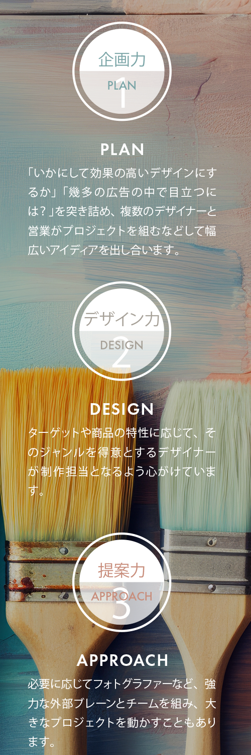 お客様の立場で課題を考え、既存の枠にとらわれないデザインをご提案できるよう、営業・デザイナー・印刷技術者が一体となって取り組みます。